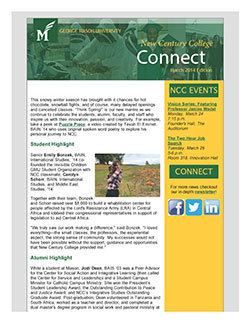 Welcome to the School of Integrative Studies (formerly New Century College) alumni and friends web page. On this page you'll find information to help you stay connected with SIS, access resources for alumni, and support the continued growth of both the school and George Mason University.